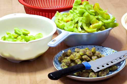 まずは包丁で皮を剥くように実を削いで種を取り出す。