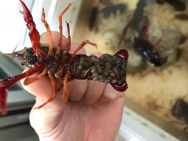大阪城公園から撮ってきたザリガニがお腹に卵を抱えていました。