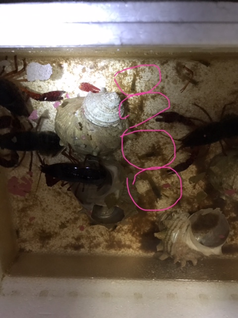 産卵された卵は稚ザリガニ(水槽の底に)まで成長しました⤴⤴